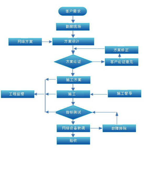我公司的技術人員將在集成過程中和用戶技術人員密切合作,共同完成系統集成工作。在此期間,我公司的技術人員將根據需要向用戶技術人員介紹1、產品概況;2、設備配置方法;3、設備間互操作;4、設備日常維護;達到用戶技術人員能自行完成維護和應用工作。系統完成后,我公司仍將長期向用戶提供技術咨詢服務,進一步向用戶提供技術方面的信息。用戶技術人員可以指定我公司某一技術方向的工程師繼續提供該方向的技術咨詢服務。